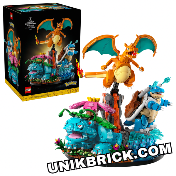 • Đặc điểm nổi bật: Bộ set tái hiện 3 linh vật hệ Cỏ - Lửa - Nước ở dạng tiến hóa cuối cùng. Mỗi mô hình đều có khả năng cử động linh hoạt (khớp chân, cánh, súng nước) và đi kèm với đế trưng bày (biome) riêng biệt như núi lửa, rừng rậm và bãi biển.